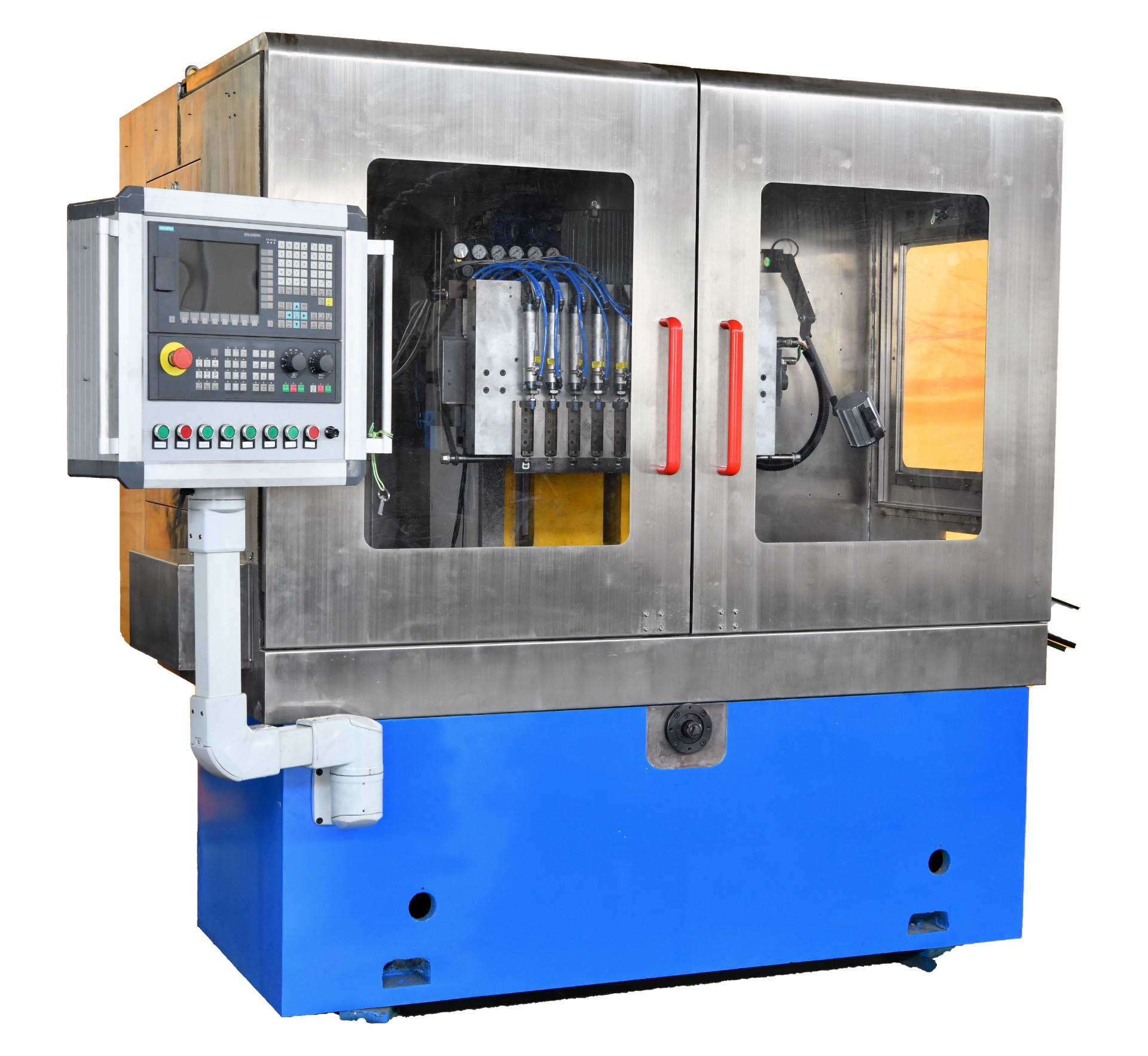 內外圓磨床整個磨削循環均自動完成,操作者僅需裝拆工件,用于磨削圓柱形和圓錐形小孔,亦可磨削外圓和端面。內外圓磨床床工作主軸、內圓磨頭、外圓磨頭均采用油霧潤滑。內外圓磨床系統編程功能較強,操作簡單易學,并具有多種適應磨削加工要求的特殊功能,可滿足用戶對多種零件的加工需要。